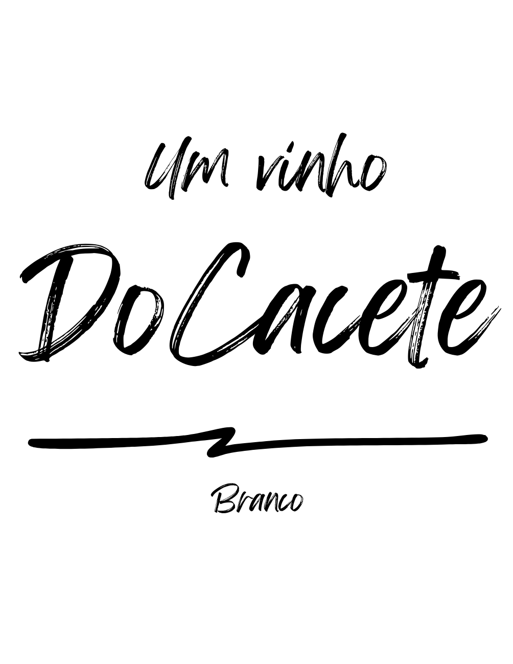 • Texto com as palavras Um vinho DoCacete Branco em fundo branco.